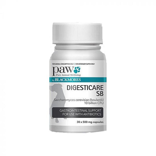 View full detailsPAW Digesticare SB contains 10 billion CFU Saccharomyces boulardii, a probiotic yeast that can be given in conjunction with antibiotics to reduce d...