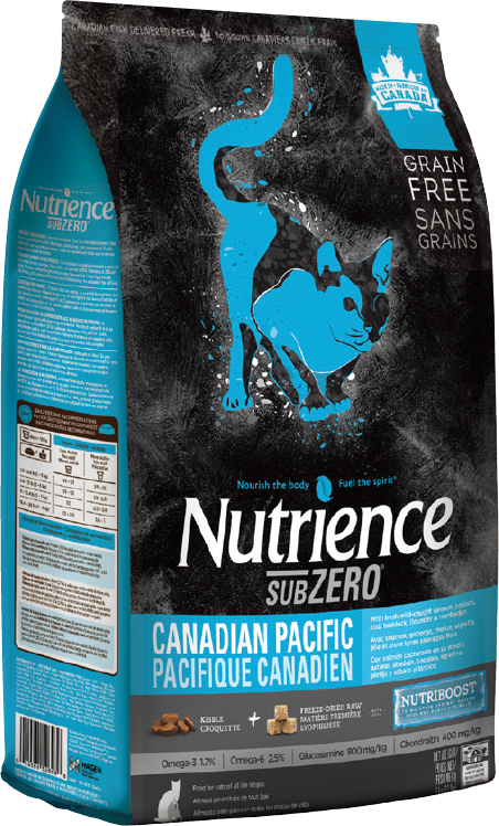 Salmon, pollock, cod, haddock, flounder, menhaden, salmon meal, herring meal, menhaden meal, peas, canola oil (preserved with mixed tocopherols), lentils, natural fish flavour, sweet potatoes, sun-cured alfalfa meal, freeze-dried salmon, freeze-dried herring, freeze-dried pumpkin, freeze-dried green mussels, freeze-dried cod liver, freeze-dried kelp, egg product, salmon oil, herring oil, choline chloride, coconut oil, DL-methionine, potassium chloride, lecithin, calcium propionate, L-lysine, taurine, pumpkin, butternut squash, carrots, spinach, broccoli, apples, blueberries, cranberries, pomegranate, ginger, peppermint leaf, licorice root, turmeric, salt, vitamins [vitamin E supplement, vitamin A supplement, niacin, calcium pantothenate, riboflavin, pyridoxine hydrochloride, thiamine mononitrate, biotin, vitamin B12 supplement, vitamin D3 supplement, folic acid], Yucca shidigera extract, yeast extract, minerals (zinc oxide, zinc proteinate, iron proteinate, ferrous sulfate, copper proteinate, copper sulfate, manganese proteinate, manganous oxide, calcium iodate, sodium selenite), glucosamine hydrochloride, dried kelp, dried chicory root, chondroitin sulfate, rosemary extract, L-carnitine, dried Lactobacillus acidophilus fermentation product, dried Lactobacillus casei fermentation product, dried Bifidobacterium bifidum fermentation product, dried Enterococcus faecium fermentation product. |