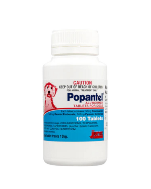 View full detailsPopantel for Large dogs is for the control of Roundworms, Whipworms, Hookworms and Tapeworms plus the Hydatid Tapeworm. (Does not control heartworm...