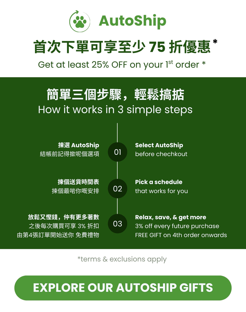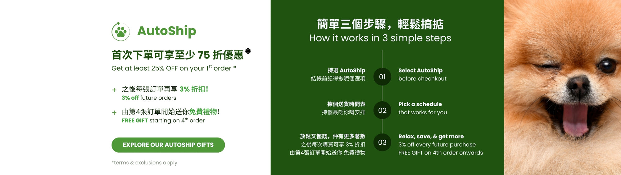 *Terms & conditions apply. PawPoints cannot be combined with Autoship. Free gifts are available while stocks last and may be replaced with another gift if out of stock. PetProject reserves the right to change this policy at any time without prior notice.