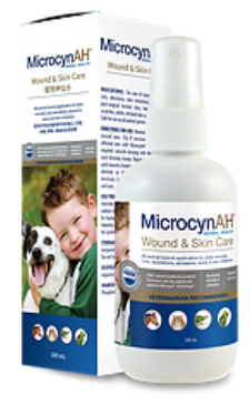 使用方法:使用前請搖勻。去除傷口處多餘毛髮。必要時可修剪。用MicrocynAH®浸潤患處。如果需要包紮,每次換藥時都用MicrocynAH®浸潤敷料。每天重複3-4次,直到傷口癒合或依照獸醫指示的治療方案進行。無需沖洗。可安全用於口、鼻、耳和眼周圍。